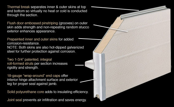 The WD Thermospan Series doors are the only doors in the industry with patented, roll-formed integral struts on each  section, making them the most rigid doors available.